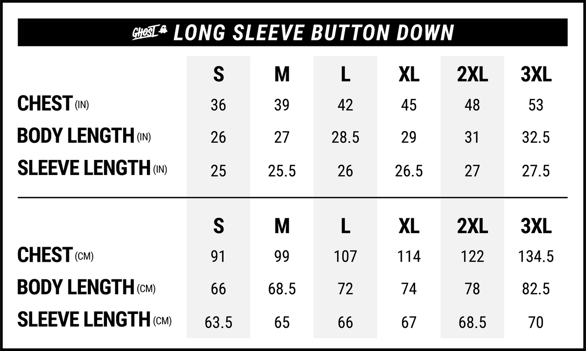 • Features a Classic Collar, GHOST® Branded Buttons, + a Rubberized GHOST® Left Chest Pocket Logo Patch