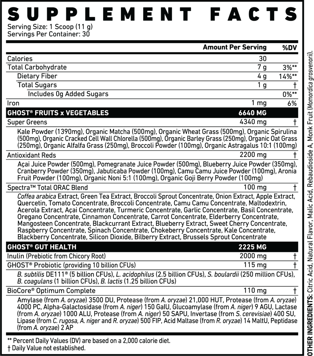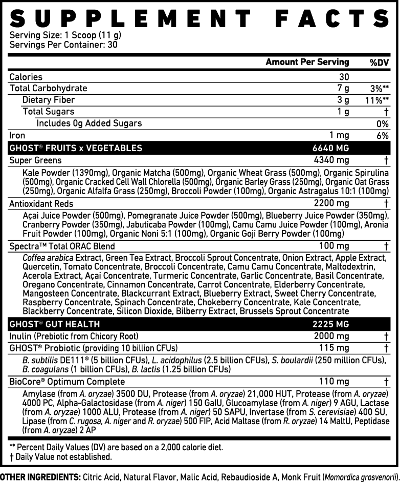 Mix each scoop (1 serving) of GHOST® GREENS with 8-10oz of water or beverage of choice. Vary amount of liquid to taste. Consume daily.