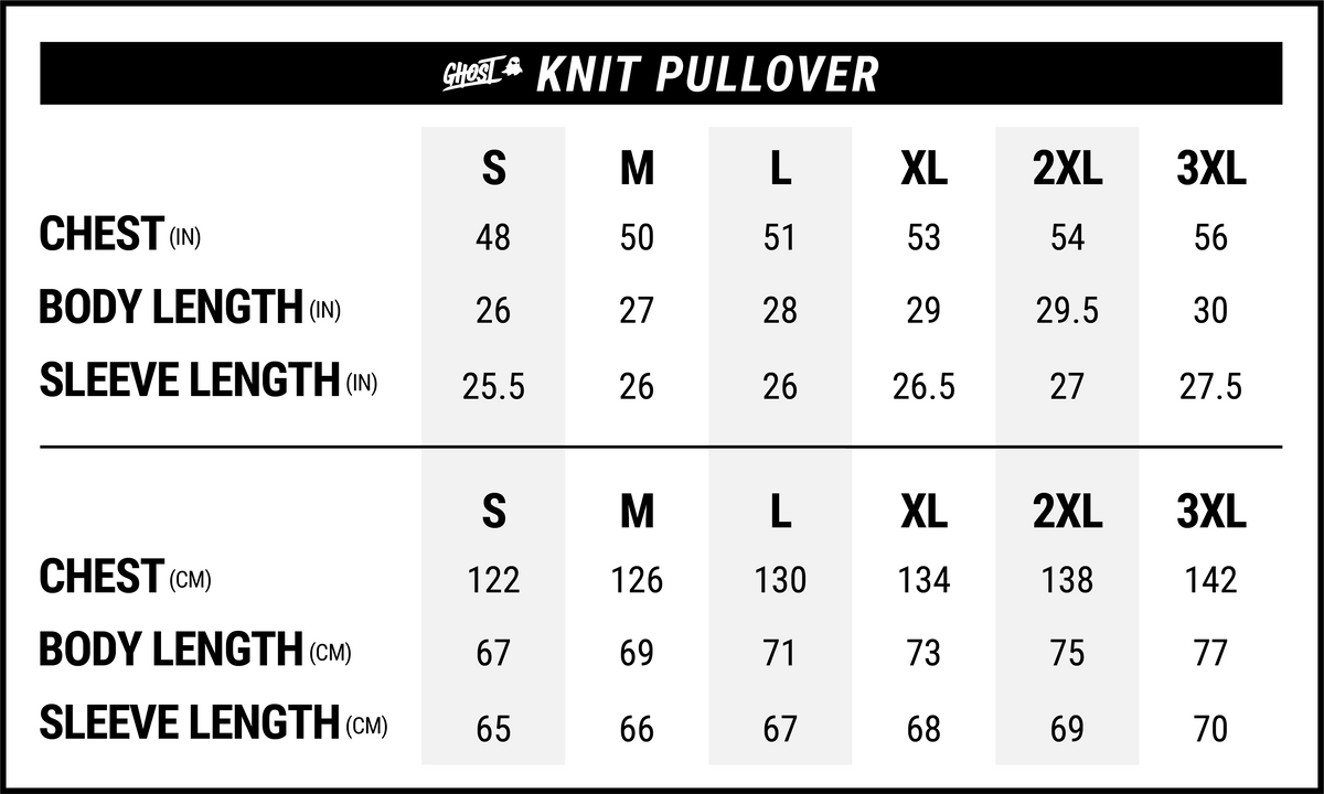 Cozy up with the GHOST® KNIT PULLOVER–knit with premium, heavy cotton to keep you warm and your fits legendary all winter long.